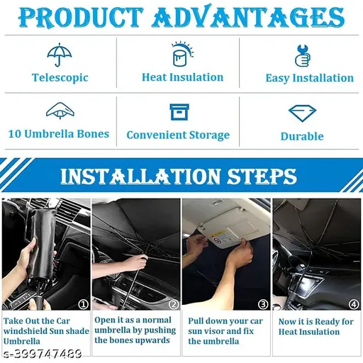 Name : Trust N Worth Folding Car Sunshade Retractable Windshield Window Sunshade Car Umbrella (Black, Pack of 1)